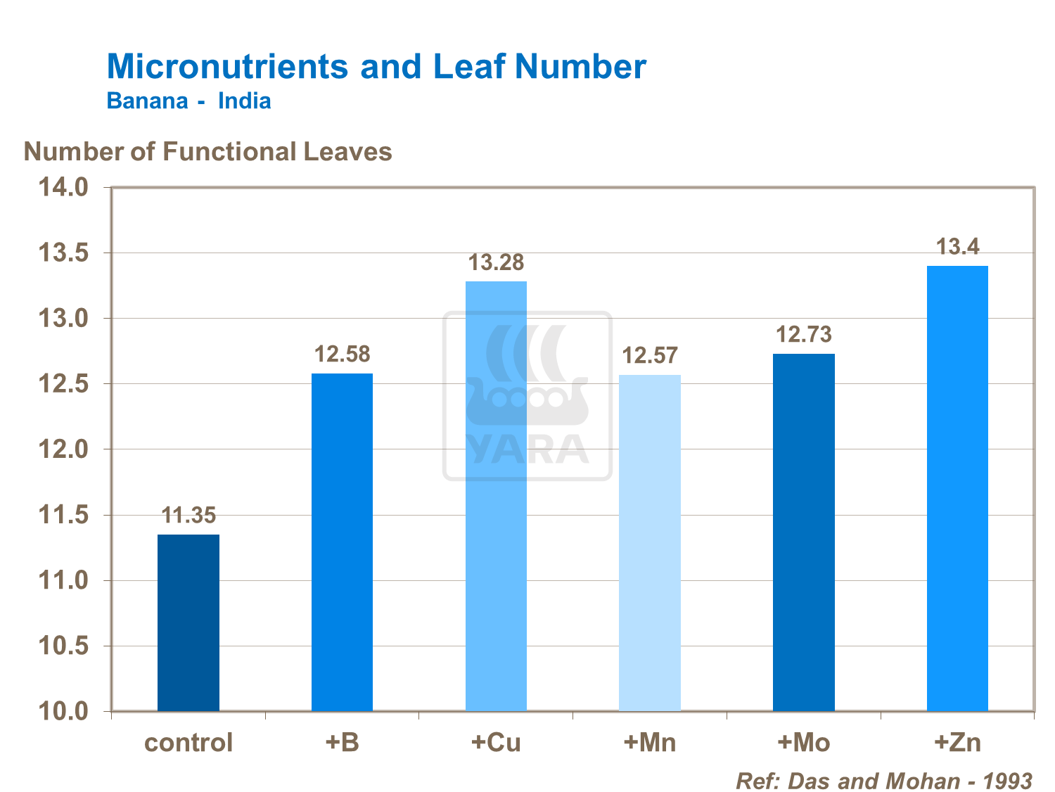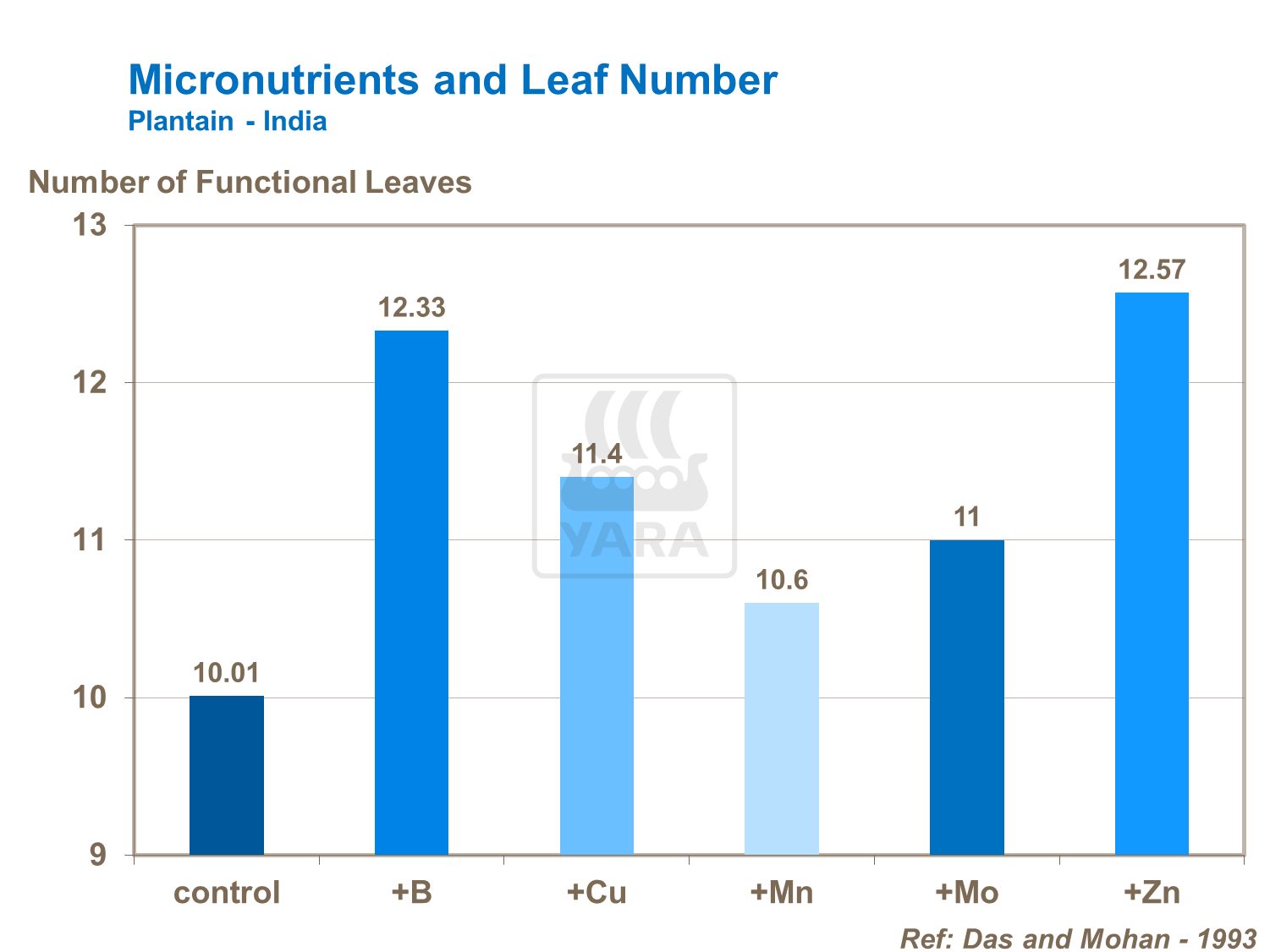 Trials show that where supplies of boron, copper, iron, manganese, molybdenum and zinc are insufficient, plant growth, productive leaf area and yield suffers. This applies equally to plantains as well as bananas.
