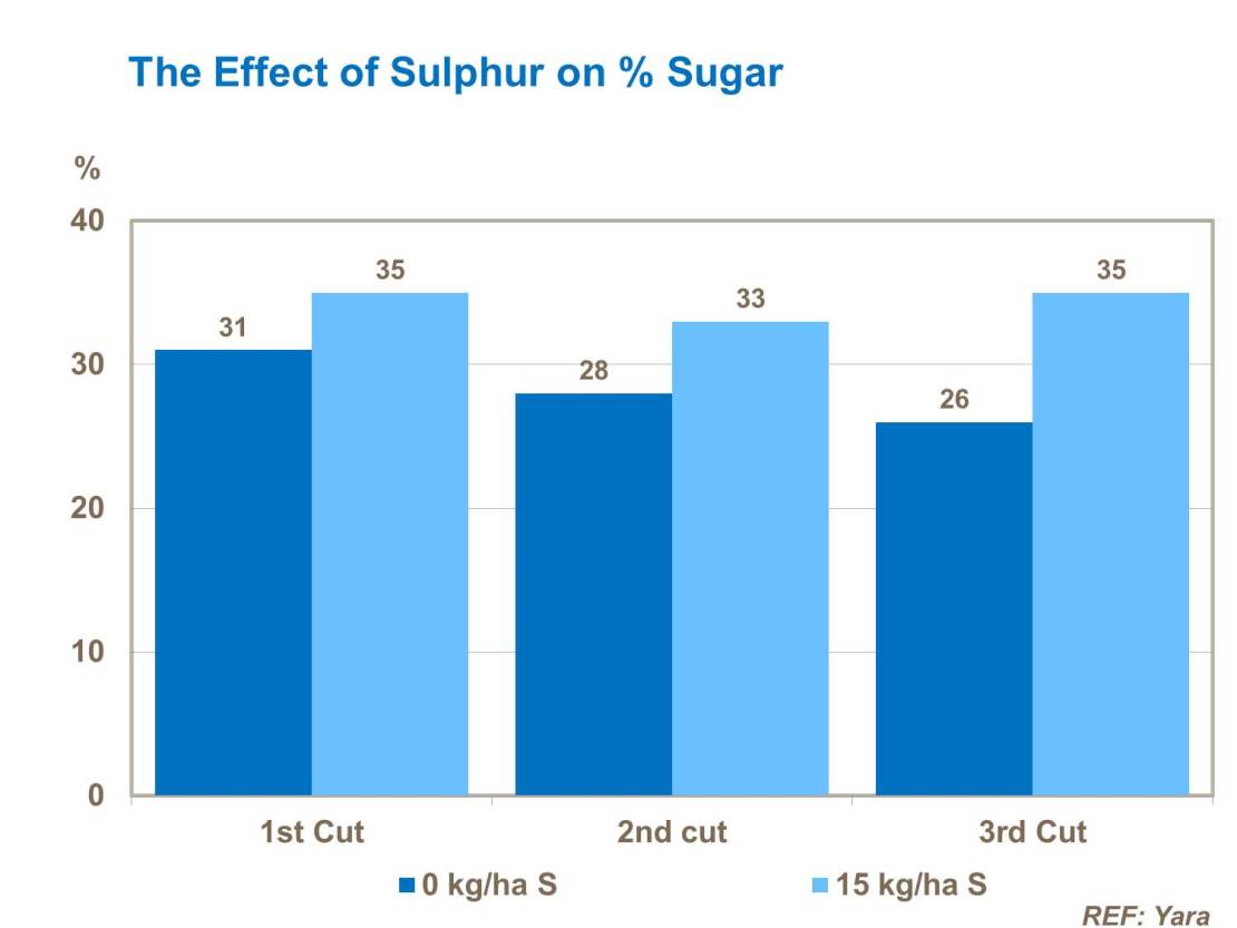 High rates of nitrogen may cause a reduction in crop sugars as they are used to provide energy for the increased rate of plant growth and for the manufacture of plant proteins and this increased growth rate may in turn lead to lower crop dry matter content although in practice this is often not significant.