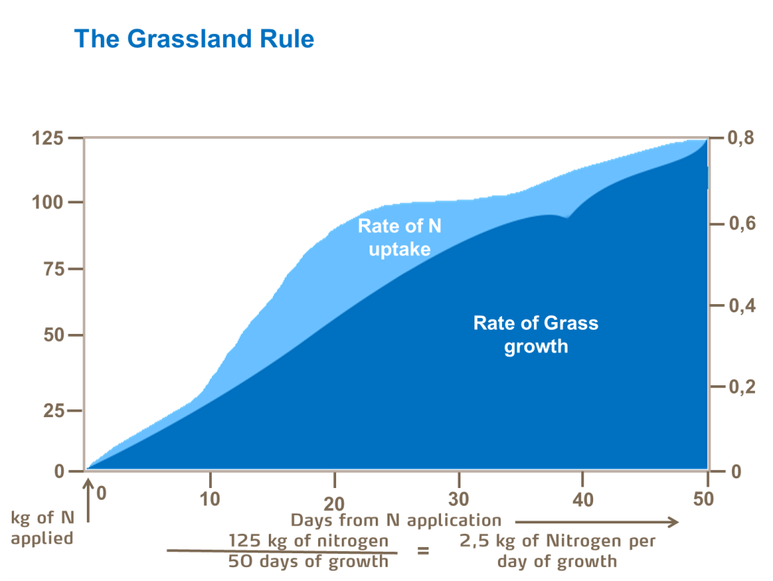 Excess nitrate can be avoided by following the Grassland Rule to apply nitrogen at the rate of no more than 2.5 kg N/ha/day.