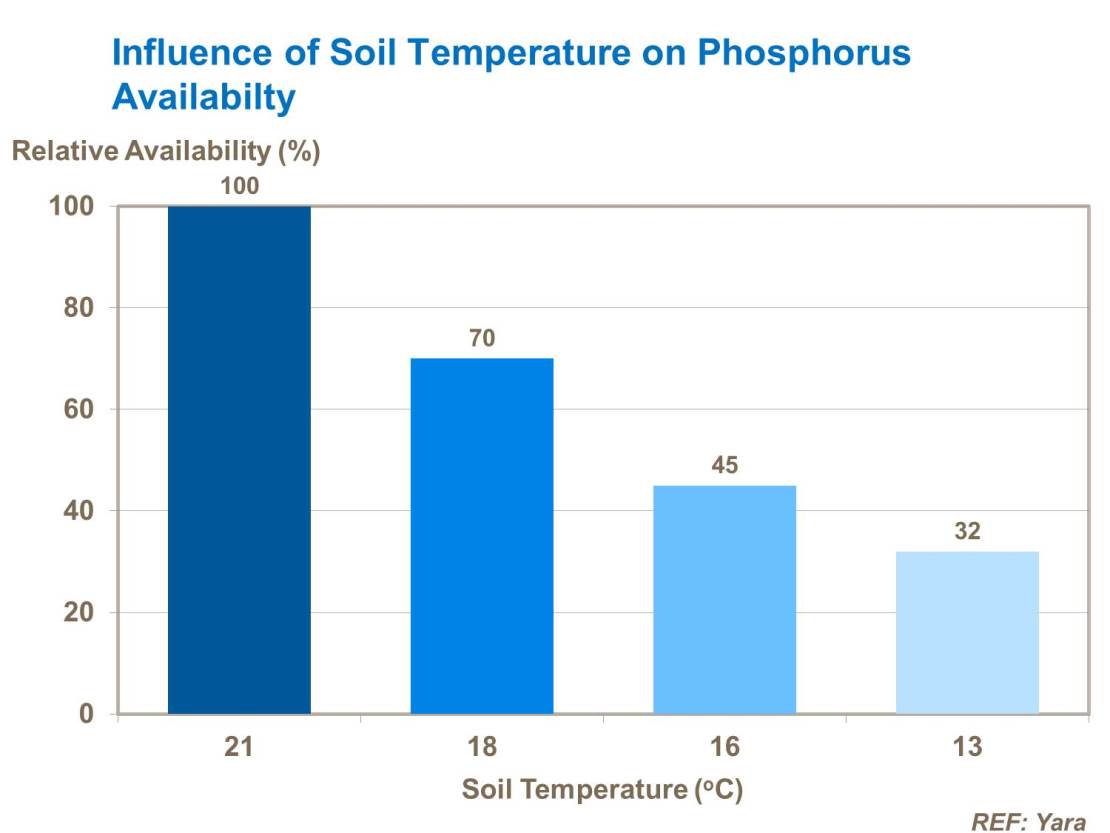 Phosphorus is very immobile in soil and its availability is limited by pH, by distance from plant roots and soil temperature.