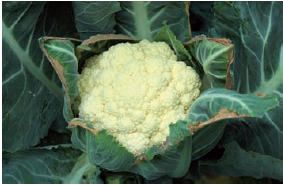 - In cauliflower, the tissue around the leaf margins gradually becomes dried in appearance and papery in texture. The young leaves are necrotic and deformed, and have to be removed from the curd during harvest which can cause quality problems in some markets.