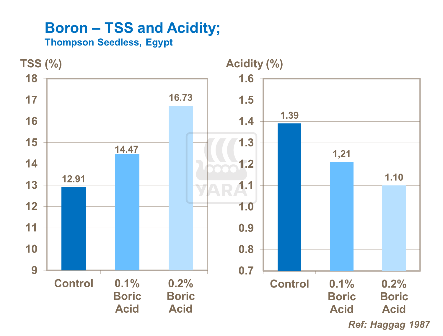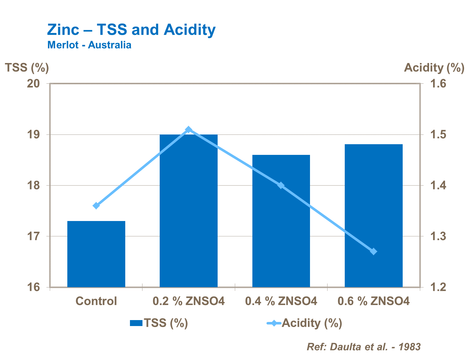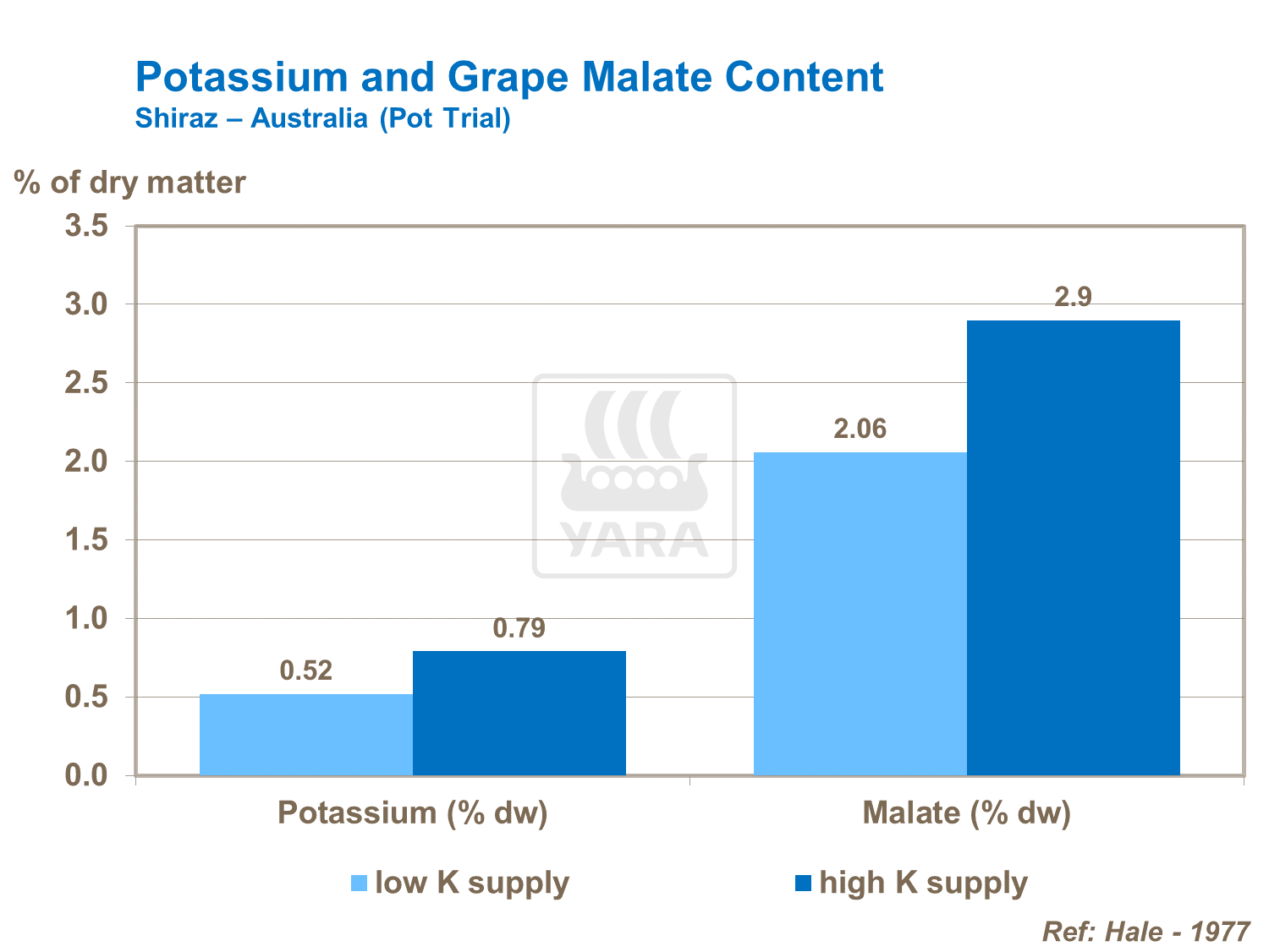 Crop nutrition is very important for the formation of malic and tartaric acids. Potassium applications serve to increase the malate and potassium concentration in berries.